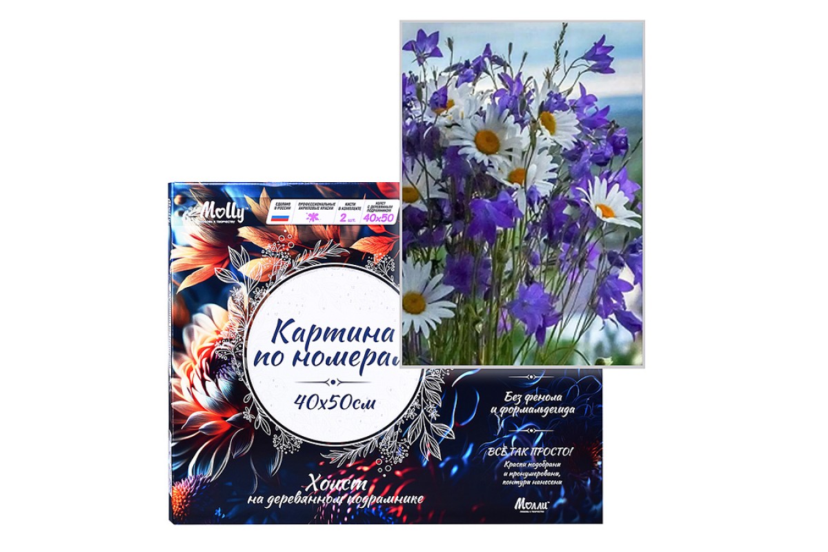 Картина по номерам 40х50 "Полевые цветы" (17 цветов)