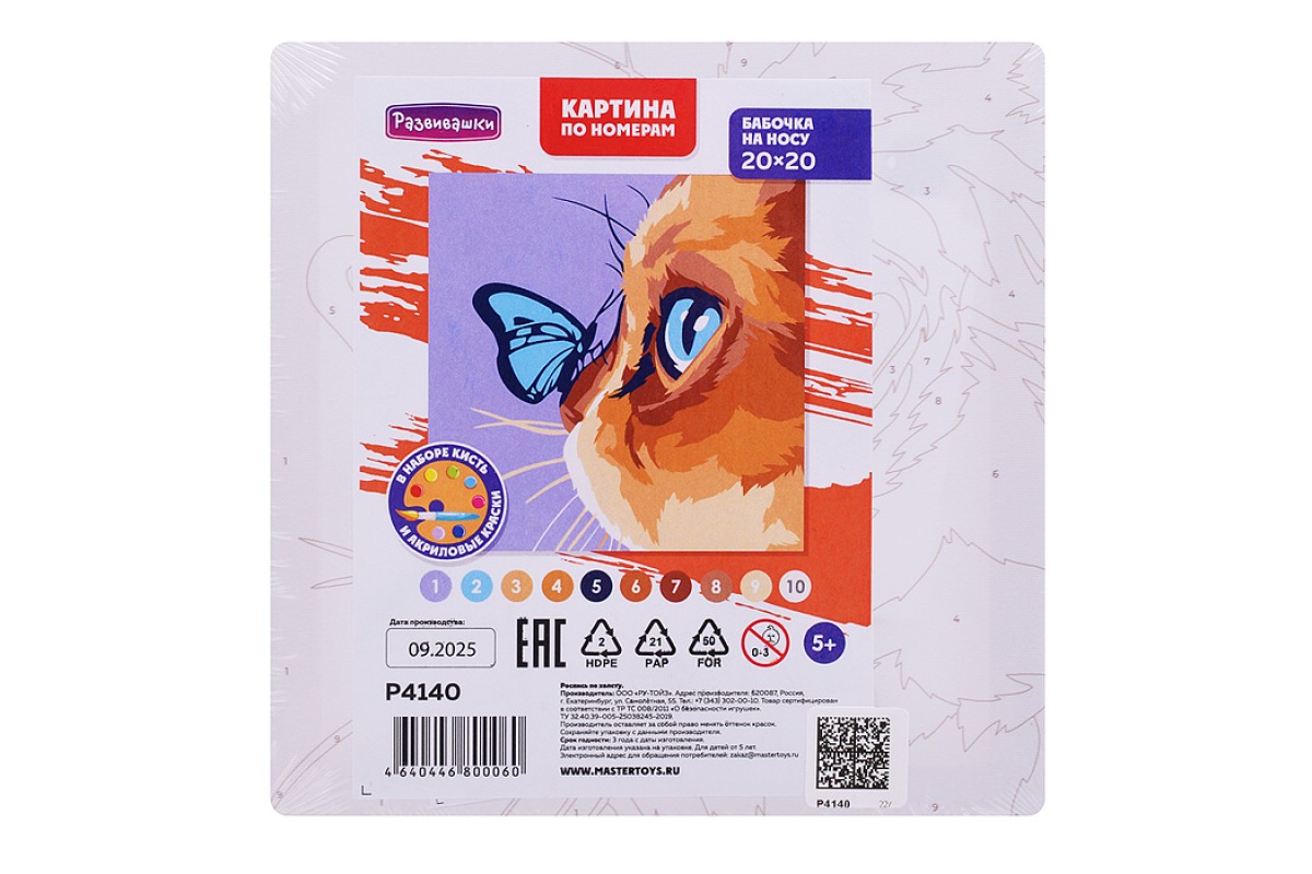 Картина по номерам "Бабочка на носу" 20х20см