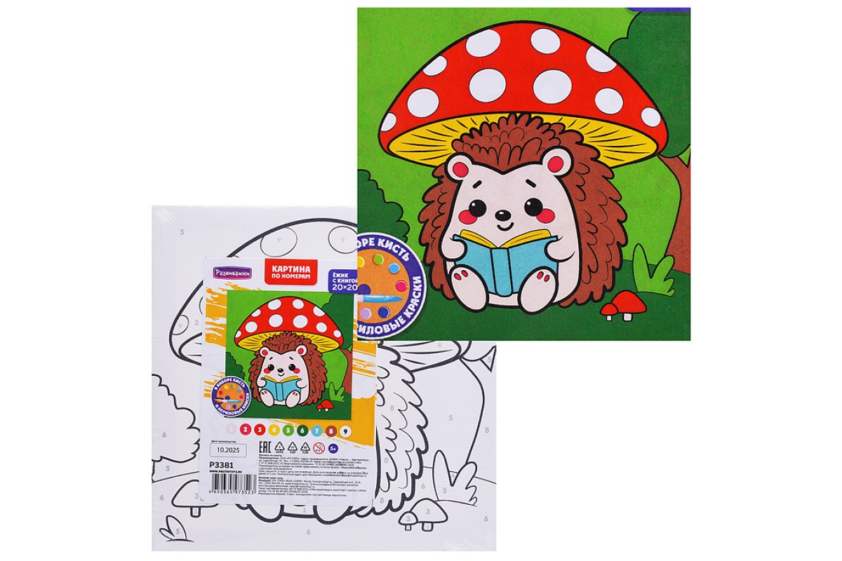 Картина по номерам "Ёжик с книгой" 20х20см