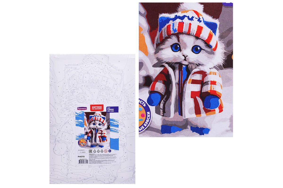 Картина по номерам "Кот в шапке" 20х30см