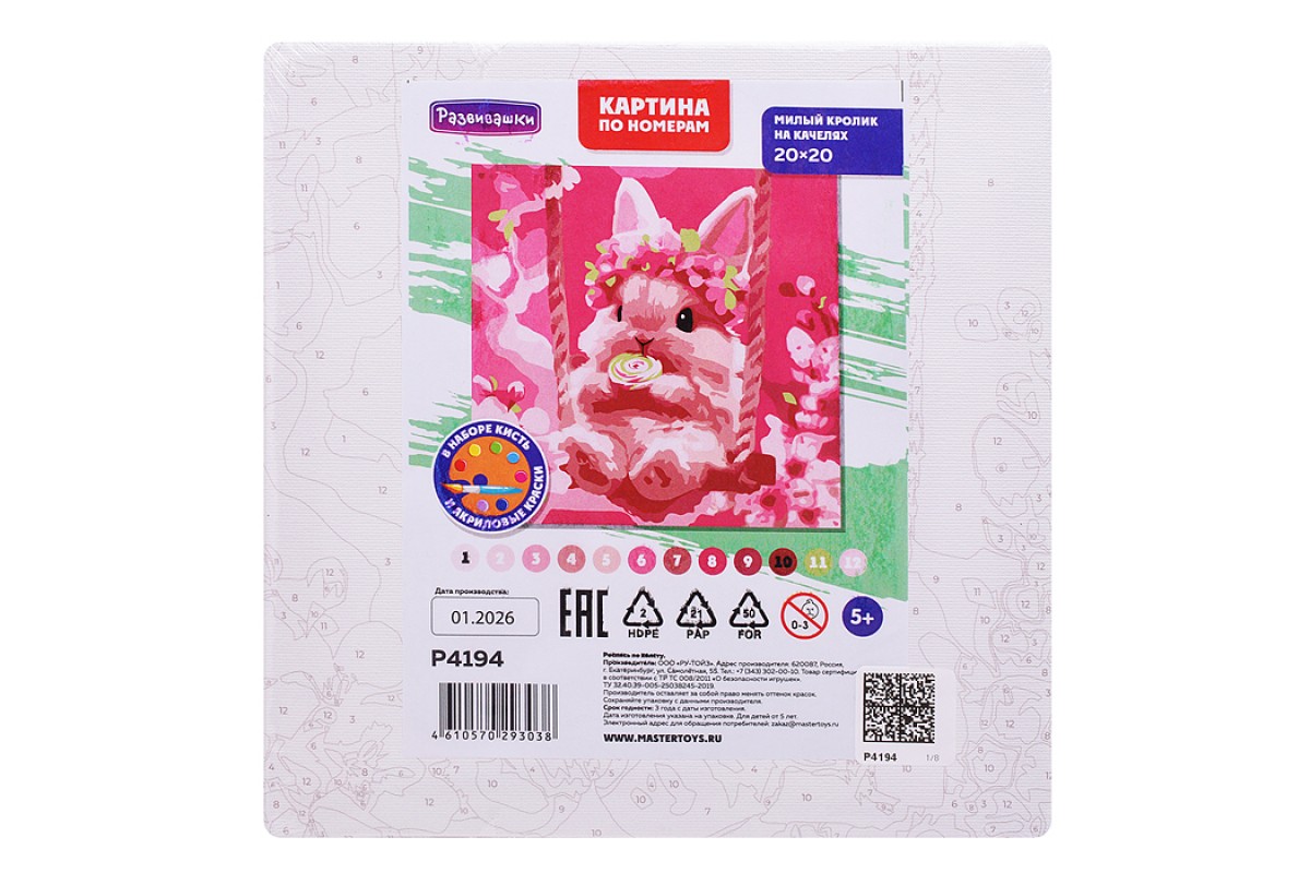 Картина по номерам "Милый кролик на качелях" 20х20см