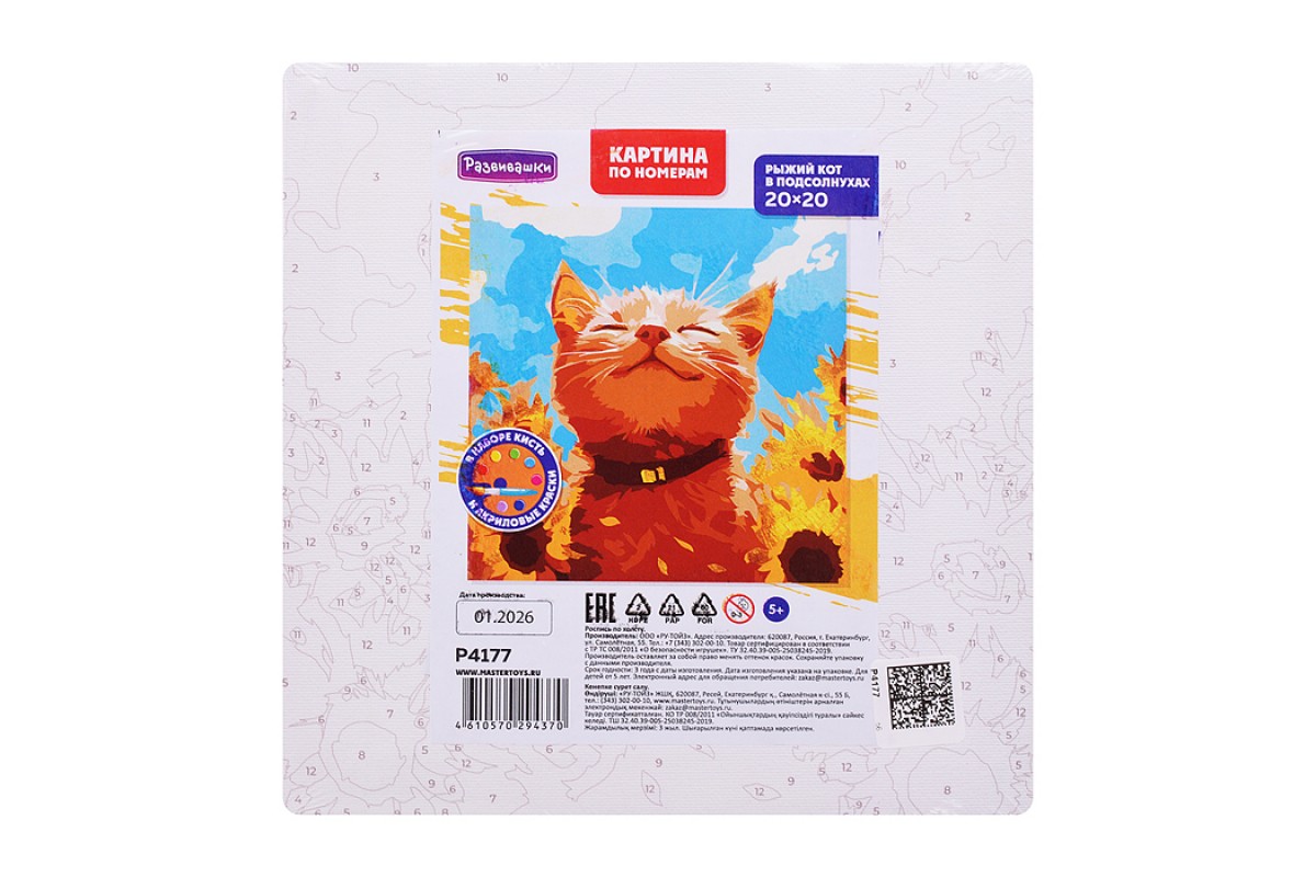 Картина по номерам "Рыжий кот в подсолнухах" 20х20см