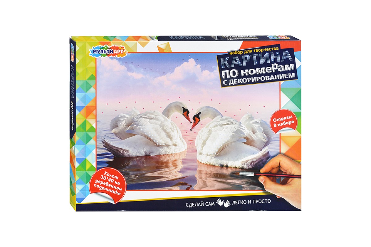Картина по номерам с декором 30х40 "Лебеди"