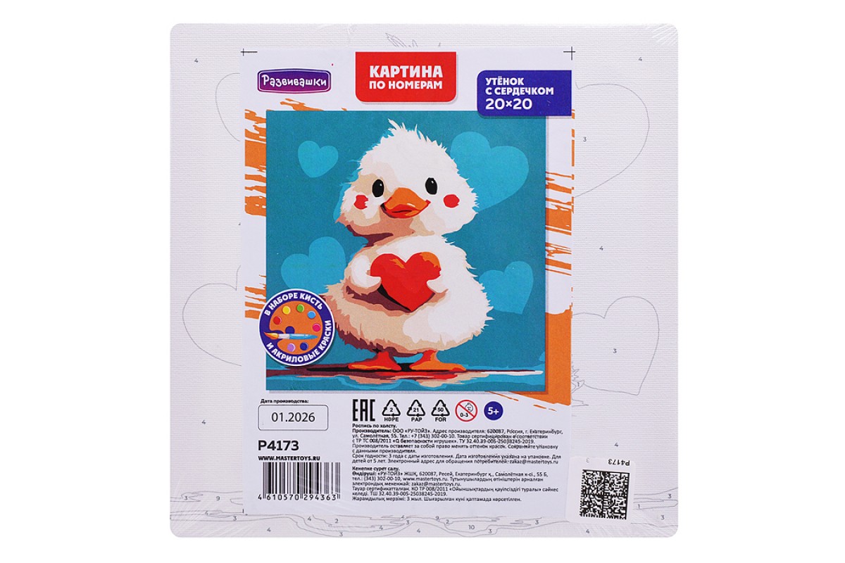 Картина по номерам "Утёнок с сердечком" 20х20см