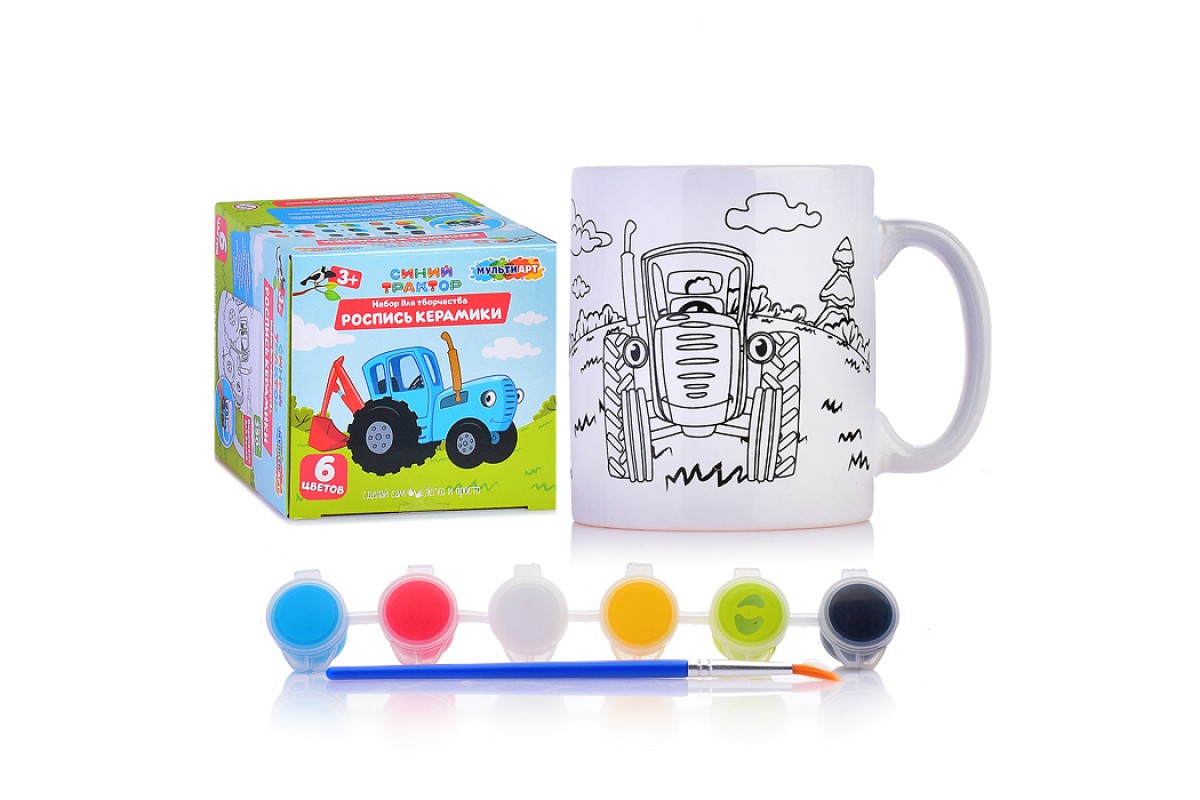 Кружка для росписи "Синий трактор" (краски, кисточка)