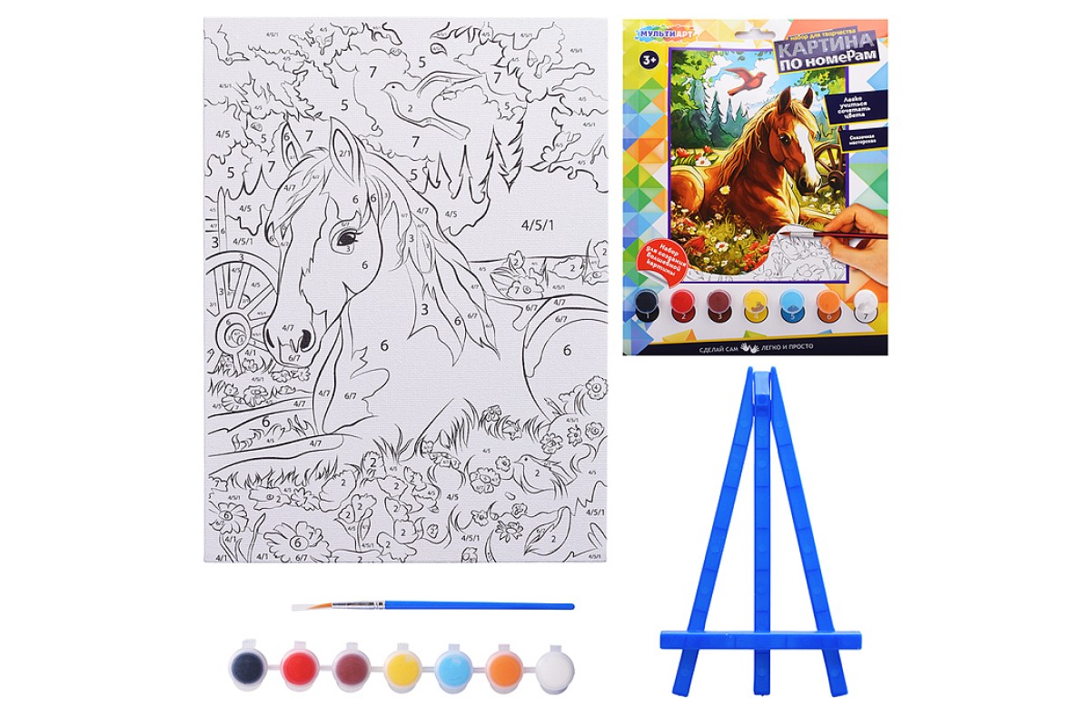 Раскраска по номерам 17х23 см "Лошадка в поле"