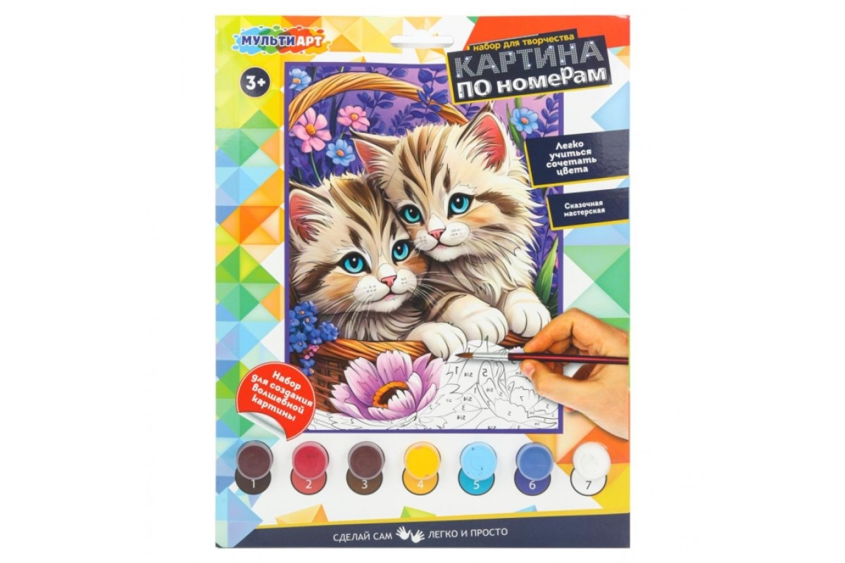 Раскраска по номерам 17х23см "Котята в корзинке"