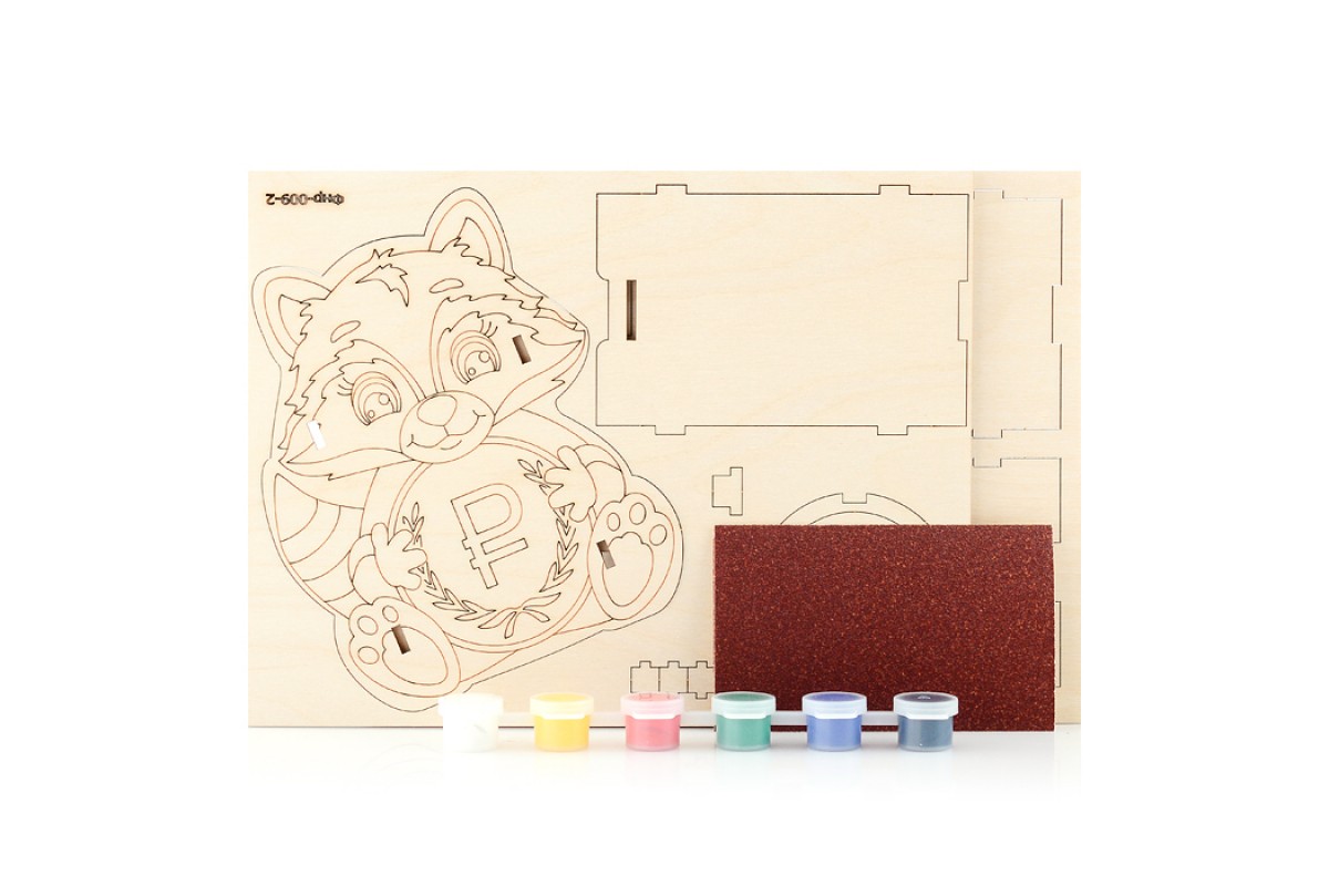 • Чтобы собрать модель, необходимо аккуратно извлечь детали из заготовки и соединить их (вставляя в пазы) согласно инструкции. После чего можно приступить к росписи копилки.