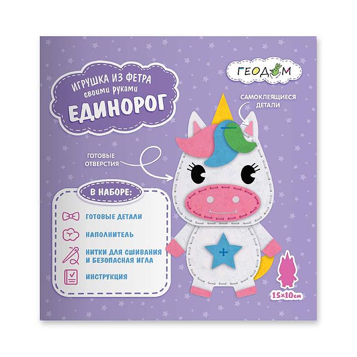 Набор для творчества. Игрушка из фетра своими руками. Единорог. 15х10 см.