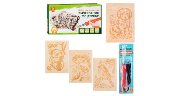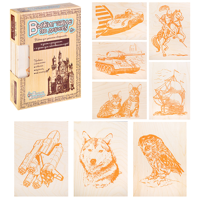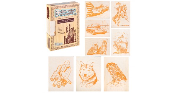 Все мы с детства помним тонкую струйку ароматного дымка при выжигании. Детские материалы для выжигания мы собрали в данной категории. Думаем, Вам будет приятно, позаниматься с детишками творчеством и вспомнить свои минуты детства.