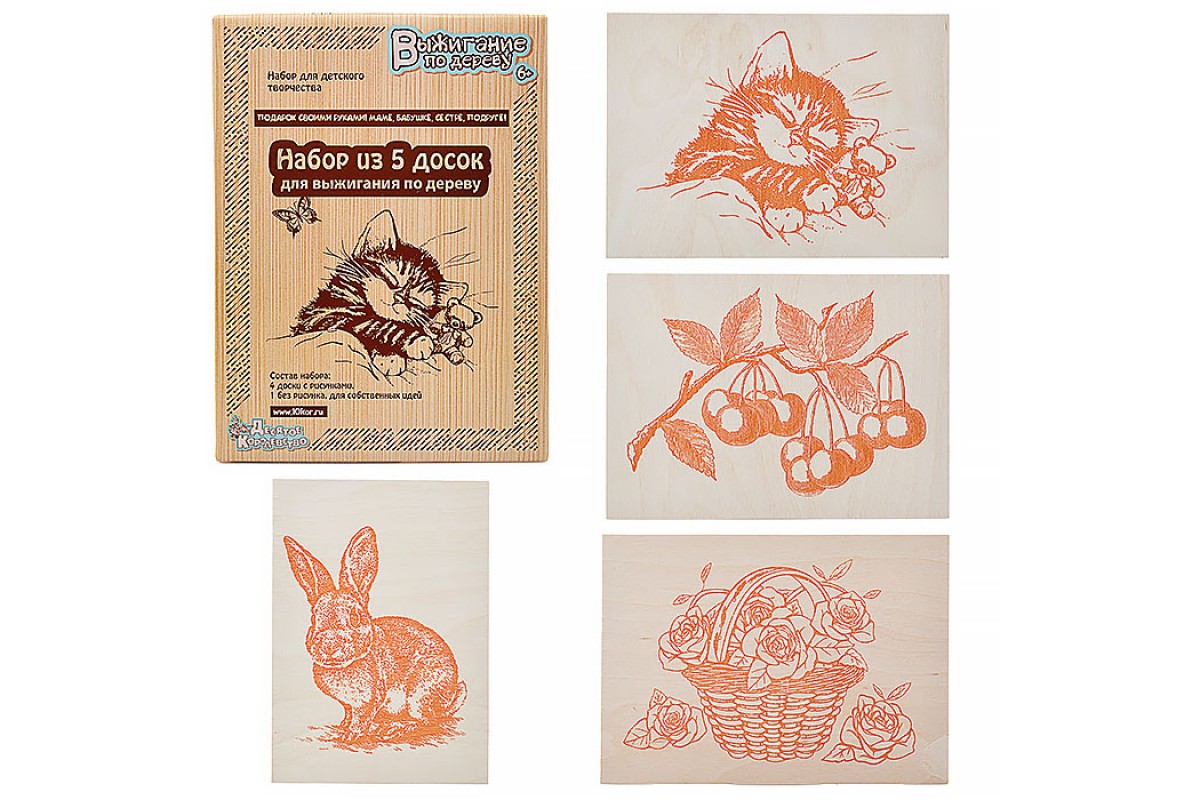 Доски для выжигания сделаны из высококачественной сертифицированной фанеры, а трафареты рисунков выполнены специальной немецкой краской, не выделяющей в процессе горения (нагрева) вредных веществ.