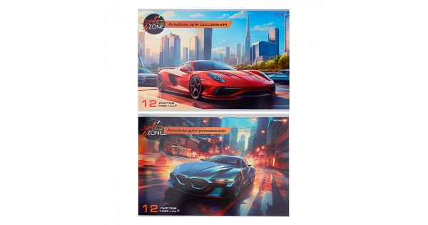 Альбом для рисования А4 12л. "Авто и современный город" скр, мелов. обл,офс, микс из 2 диз.