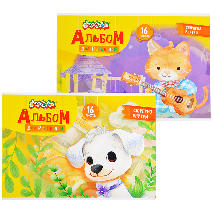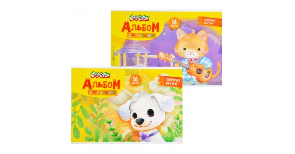 Альбом для рисования 16 л. А4 скреп. мел. карт., ВД-лак, офс. раскраска на обложке