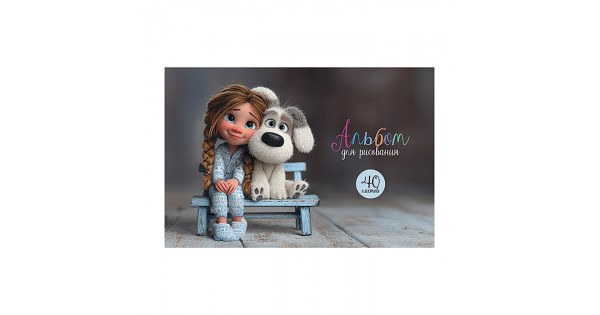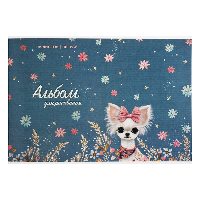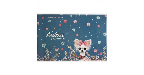 Альбом для рисования 12л. "Собачка с бантиком" А4 блок - белый офсет 100 г/м²,