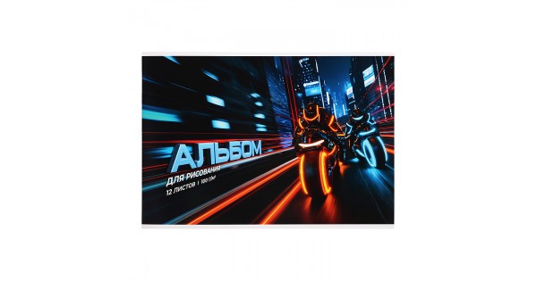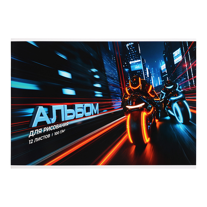 Альбом для рисования 12л. "Ночные мотоциклисты" А4 блок - белый офсет 100 г/м²,