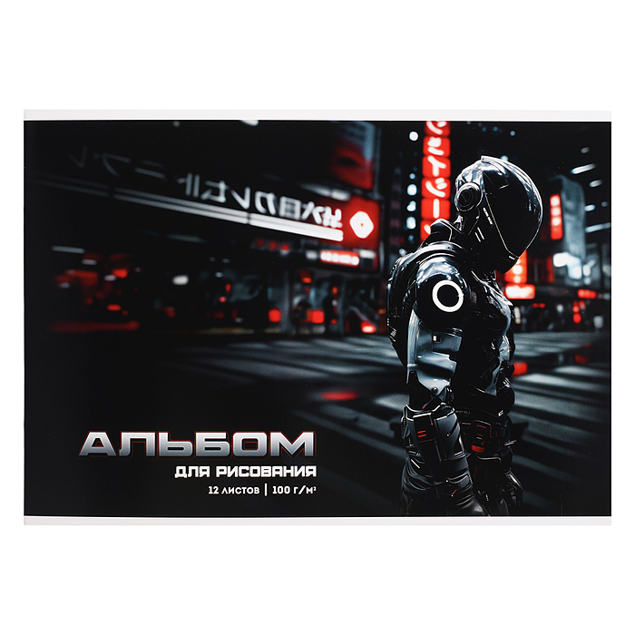 Альбом для рисования 12л. "Гонщик в шлеме" А4 блок - белый офсет 100 г/м²,