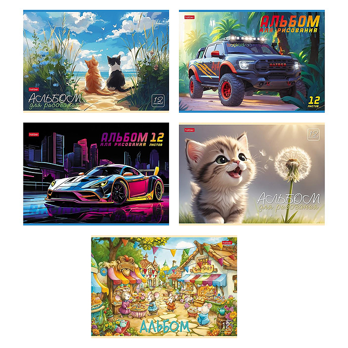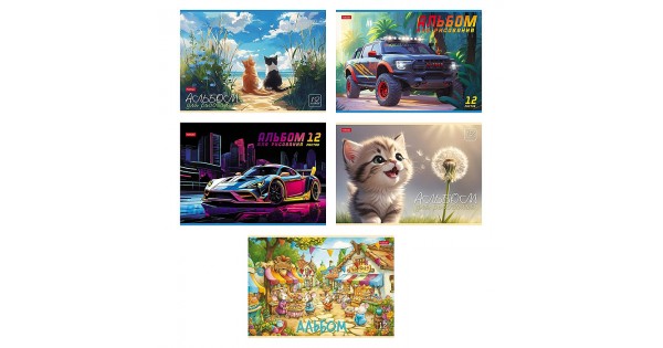 Альбом для рисования 12л "Ассорти" А4ф на скобе 5 диз. в блоке Выпуск №4