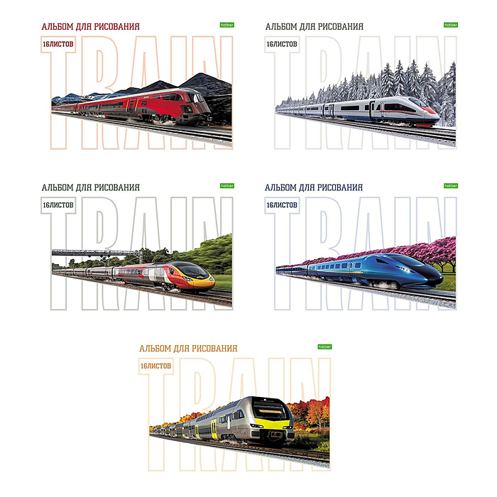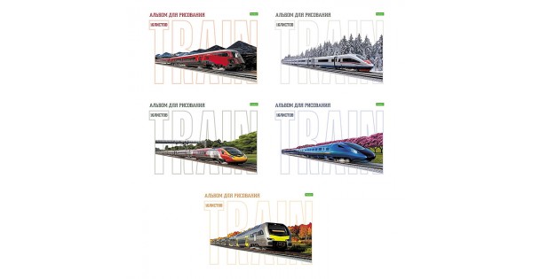 Альбом для рисования 16л "Современные поезда" А4 на скобе 5 диз.в блоке