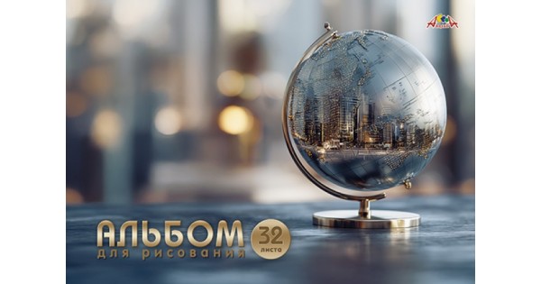 Альбом для рисования 32л. на гребне цв.мел.карт.обл."Зеркальный глобус"