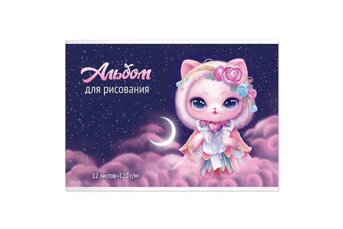 Альбом для рисования 12 л, А4 "Кошка-принцесса" 120 г/м².
