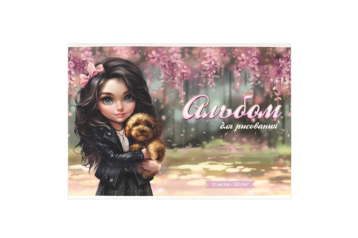 Альбом для рисования 12 л, "Брюнетка с собачкой" 100 г/м².