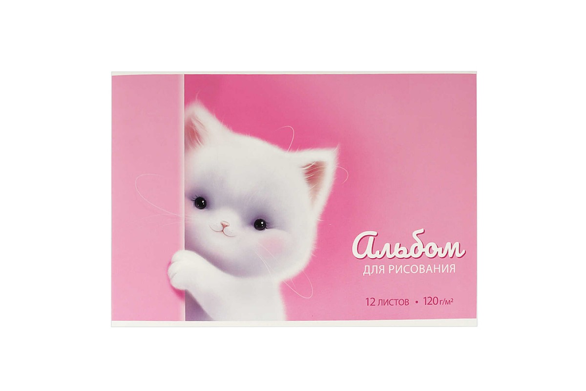 Альбом для рисования 12 л, "Пушистый кот" 100 г/м².