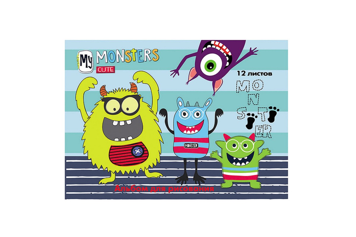 Альбом для рисования 12 л., "Радостные монстрики" скрепка