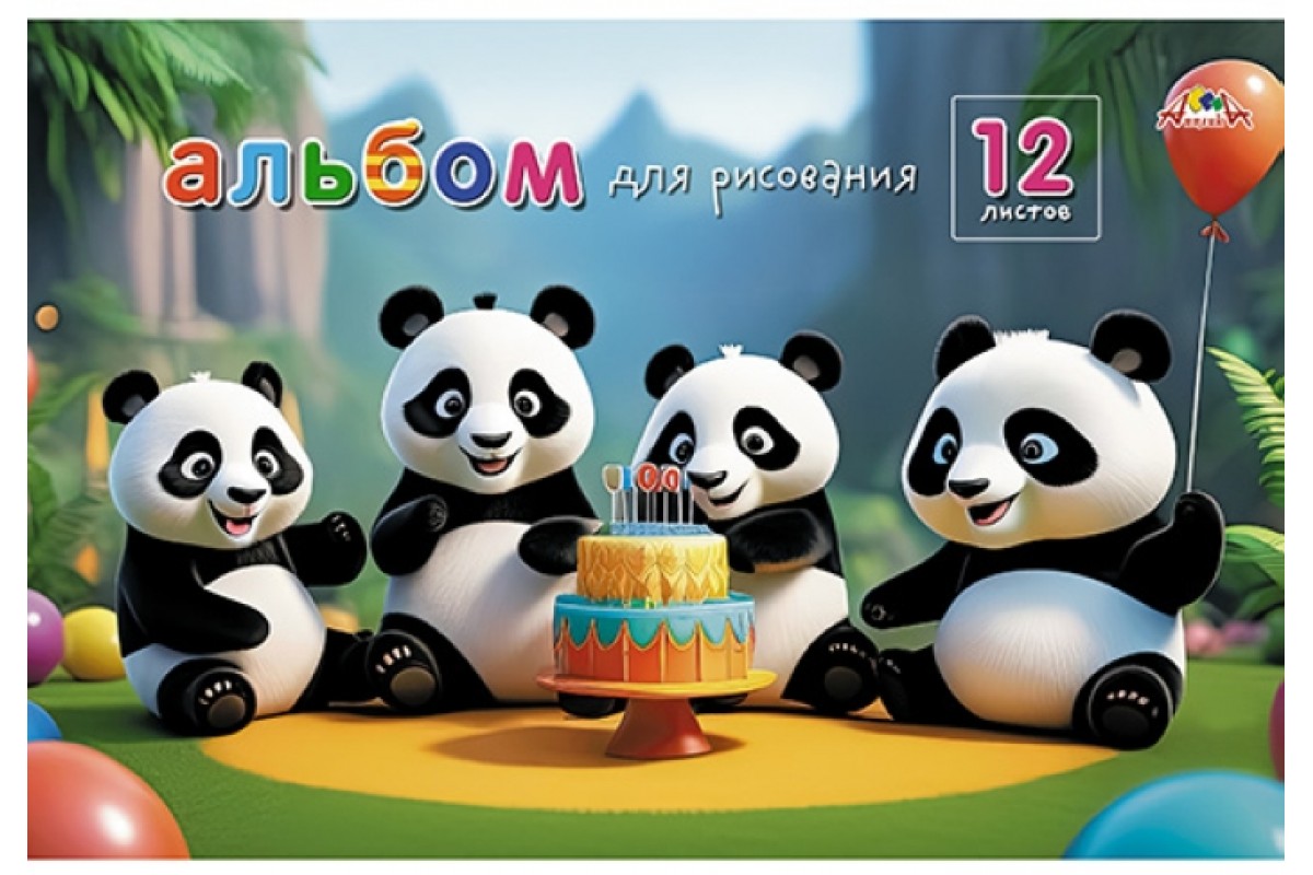 Альбом для рисования 12л. цв. офс. обл."Панда-праздник"