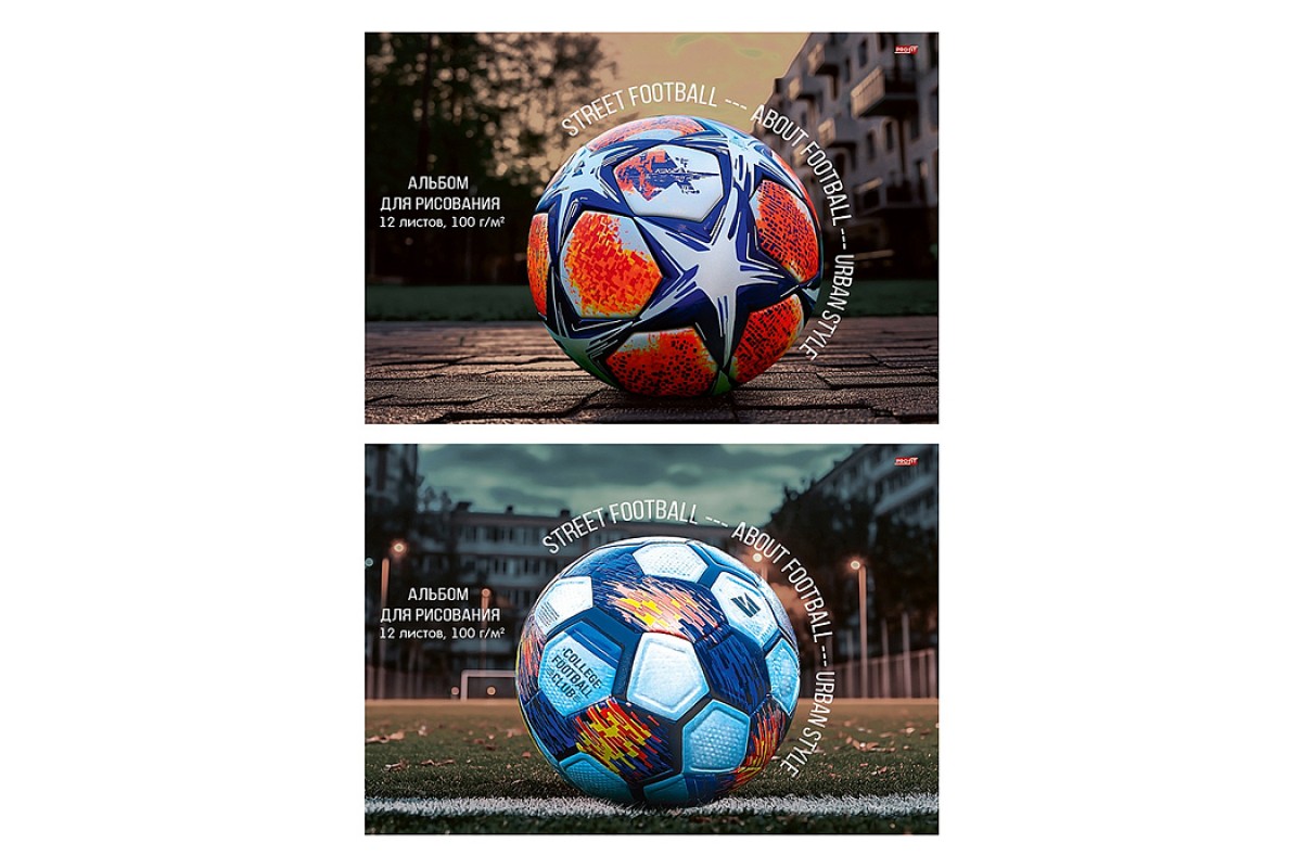 Альбом для рисования 12л. "Разные футбольные мячи - 6" скрепка, 2диз