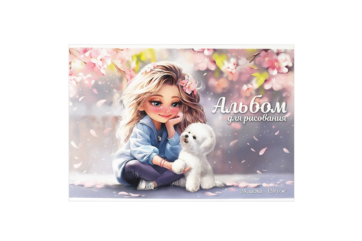 Альбом для рисования 24 л, "Блондинка с собачкой" 120 г/м²,