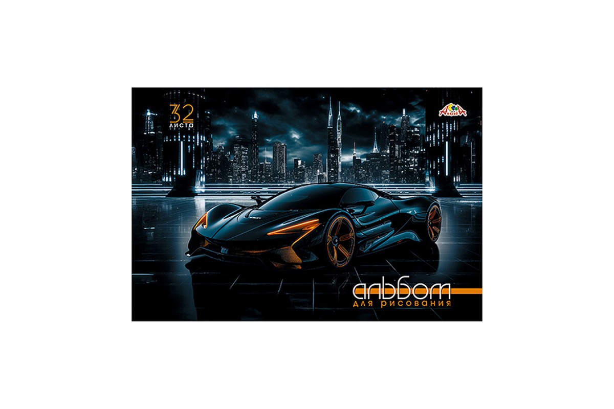 Альбом для рисования 32л. цв.мел.карт.обл."Черное авто"