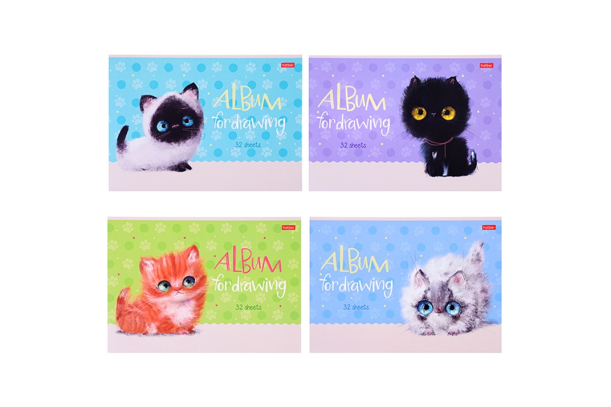Альбом для рисования 32л. "Кошарики" А4ф, на скобе мат. ламин.