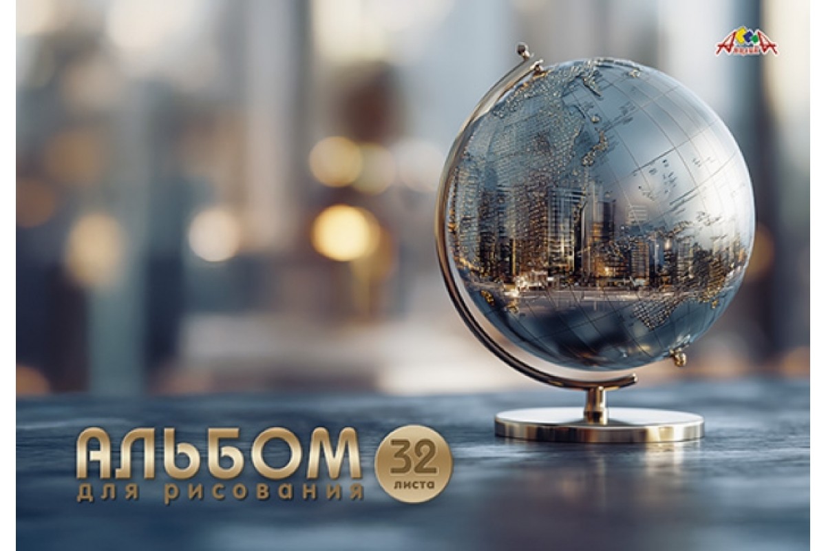 Альбом для рисования 32л. на гребне цв.мел.карт.обл."Зеркальный глобус"