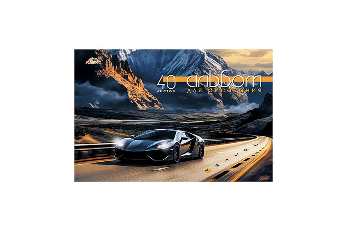 Альбом для рисования 40л. цв.мелов.карт.облож."Гоночное авто"