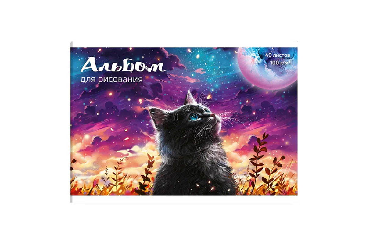 Альбом для рисования 40л. "Кот и луна" 100 г/м²,