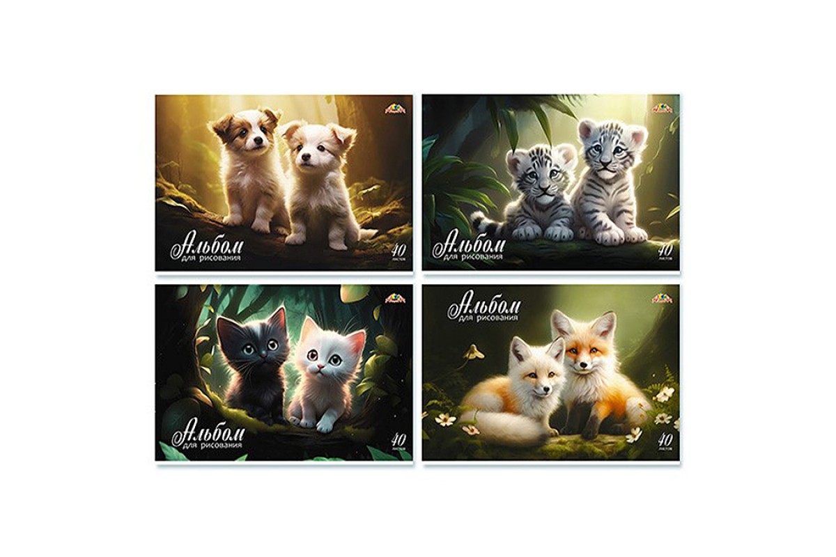 Альбом для рисования 40л. "Лесные малыши" скоба, по сериям