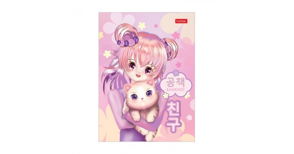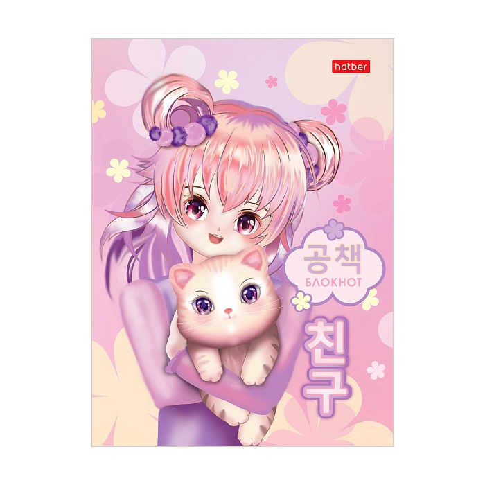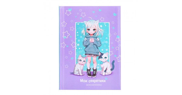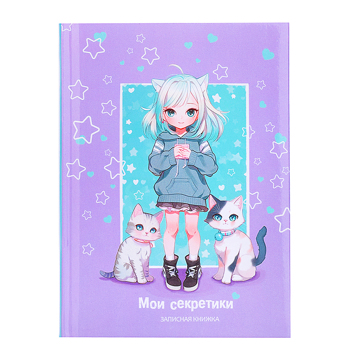 Записная книжка 64л А6 клетка/линия "Аниме с котиком" тв. переплет мат. ламин.