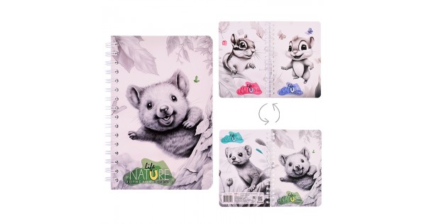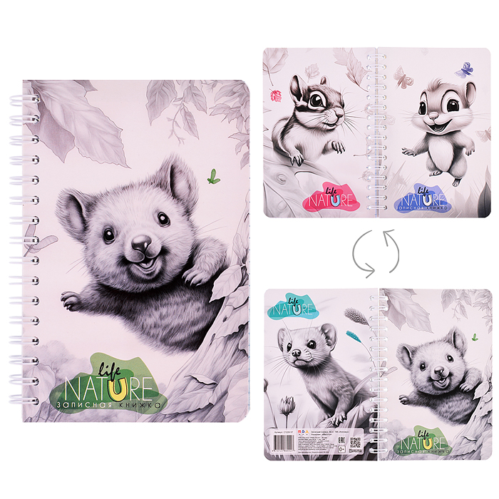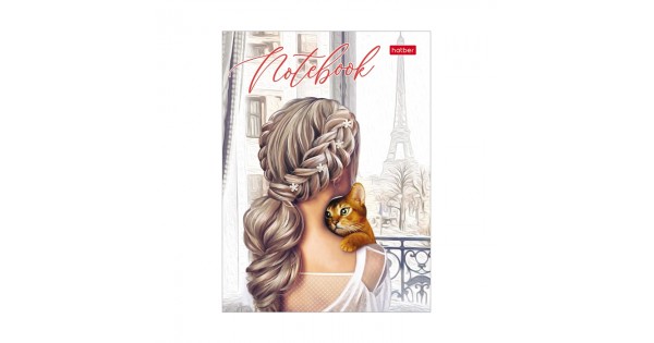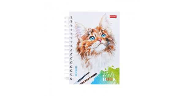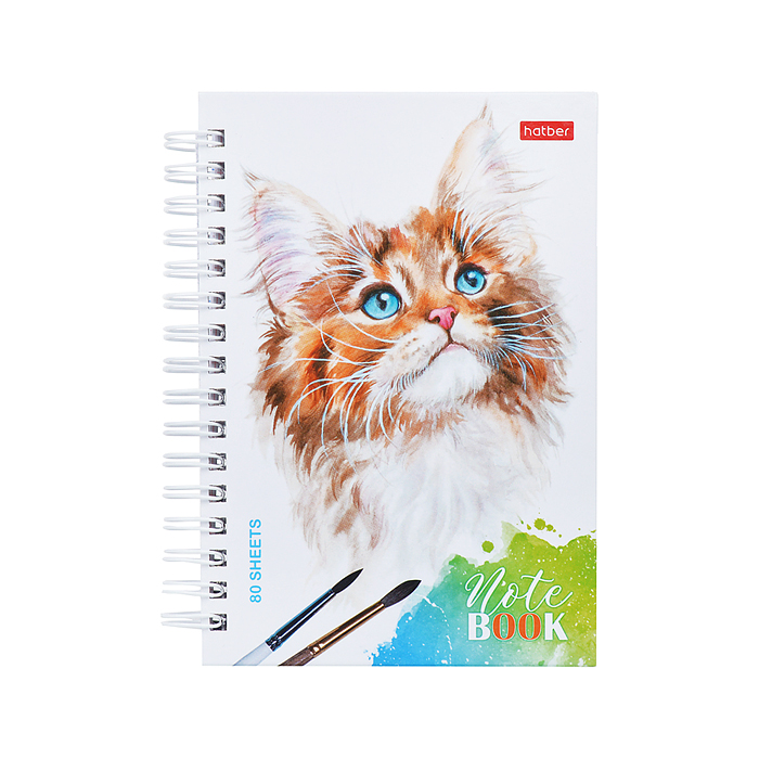 Записная книжка 80л А6ф "Рыжий котик" 2-х цветная клетка с твердой обложкой двойная на гребне глянц. ламин