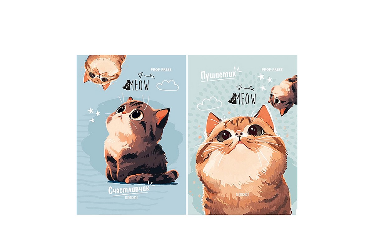 Блокнот 48л. А7 "Кот-пушистик-1" КБС, цвет.мелов.обл, блок-офсет