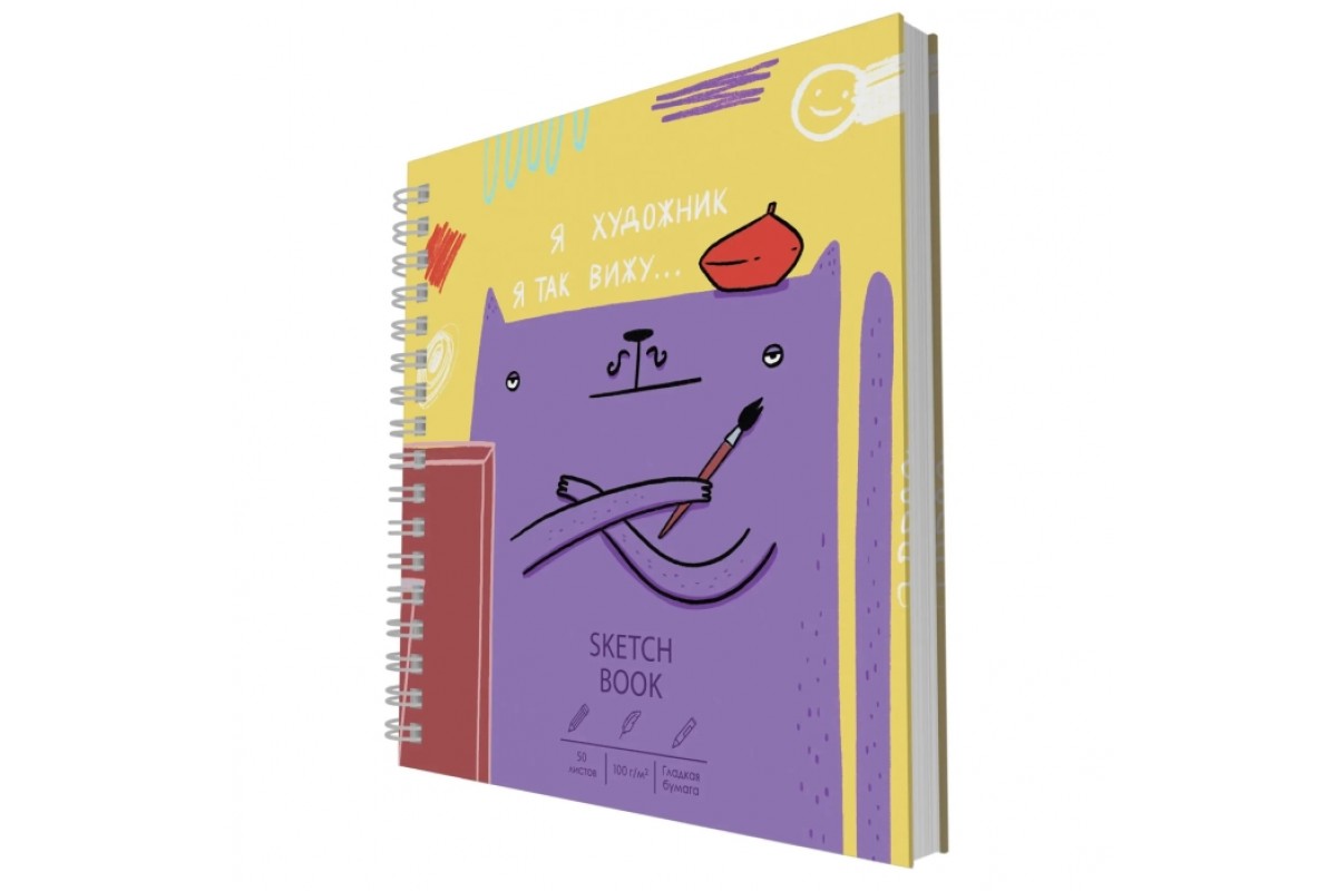 Скетчбук 50л. "Художник" 7БЦ. матовая ламинация, евроспираль сбоку