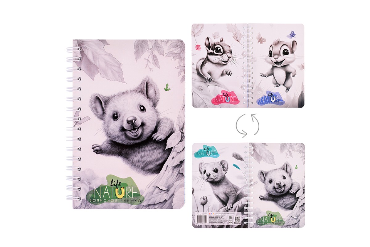Записная книжка - перевертыш А6 на гребне 80л. "Милота"