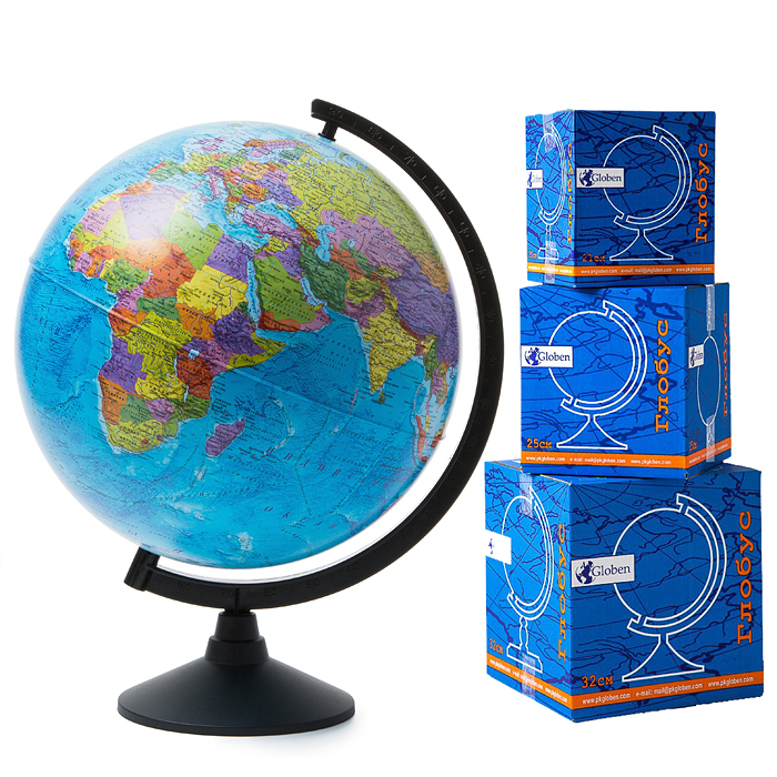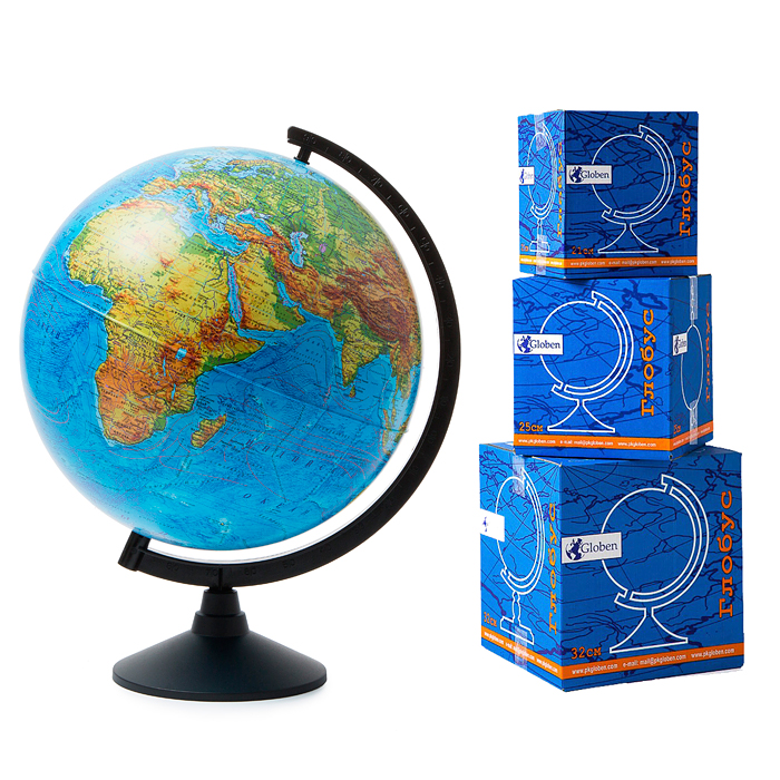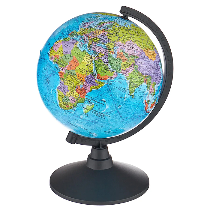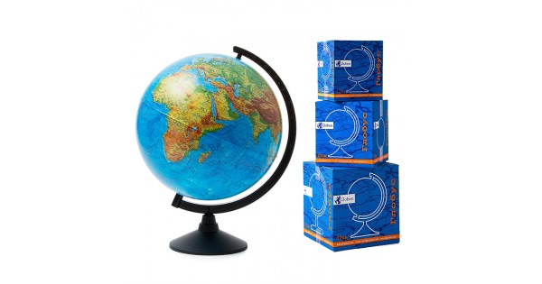 Глобус Земли физико-политический 250мм Рельефный с подсветкой Классик Евро