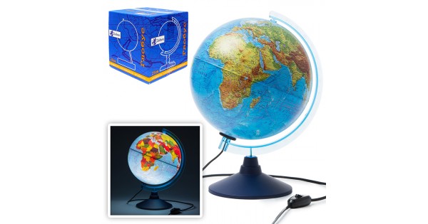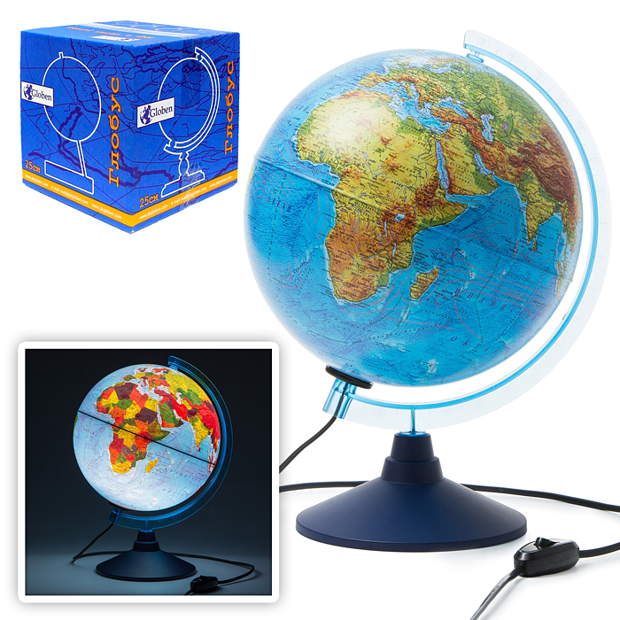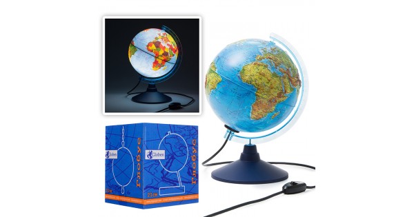 Глобус Земли физико-политический 250мм с подсветкой Классик Евро