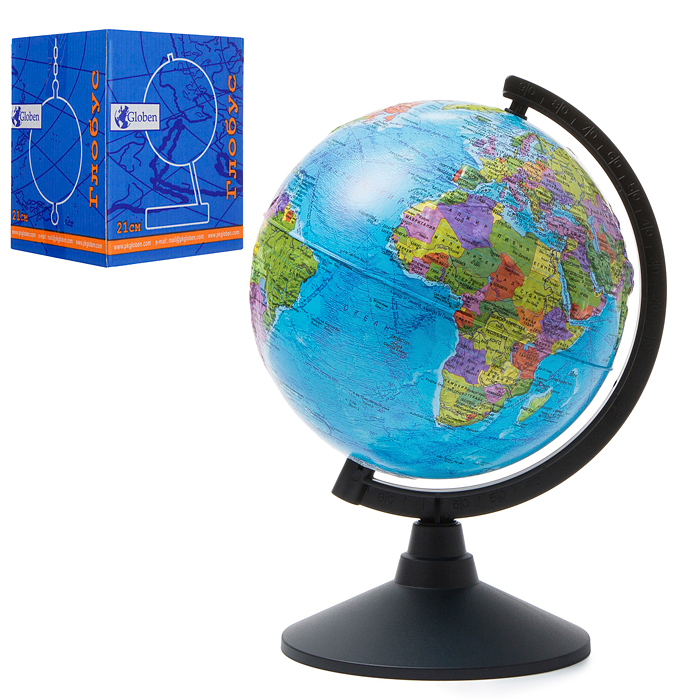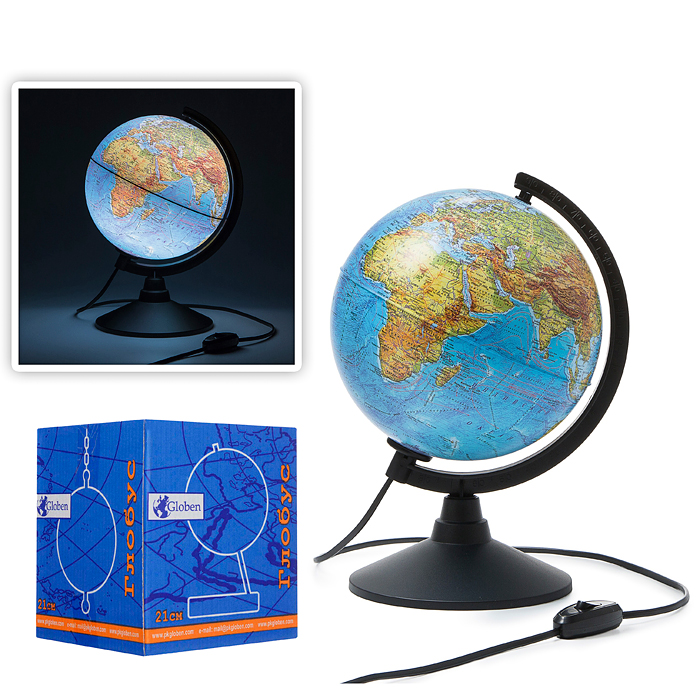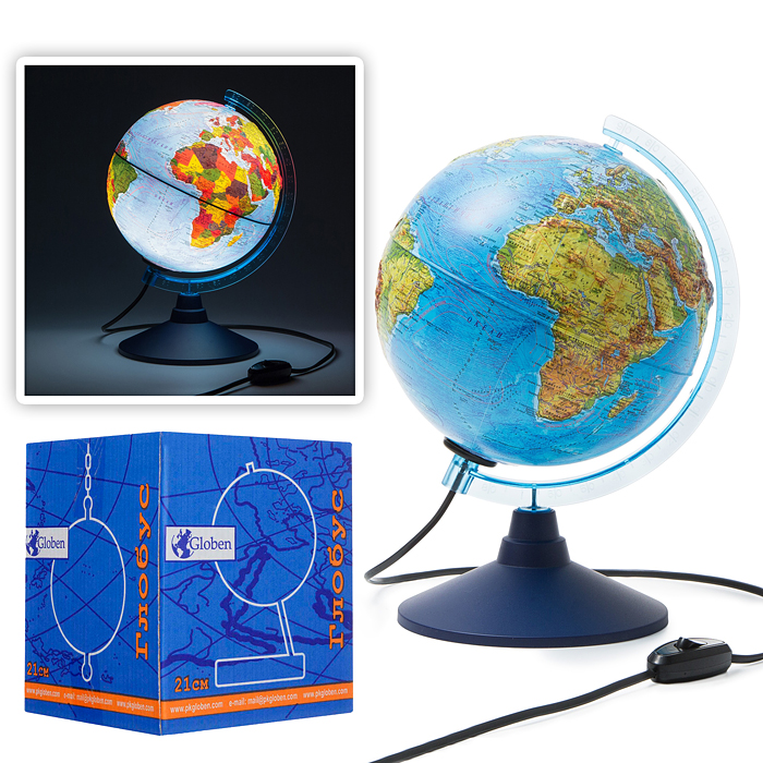 Глобус Земли физико-политический 210мм Рельефный Классик Евро с подсветкой