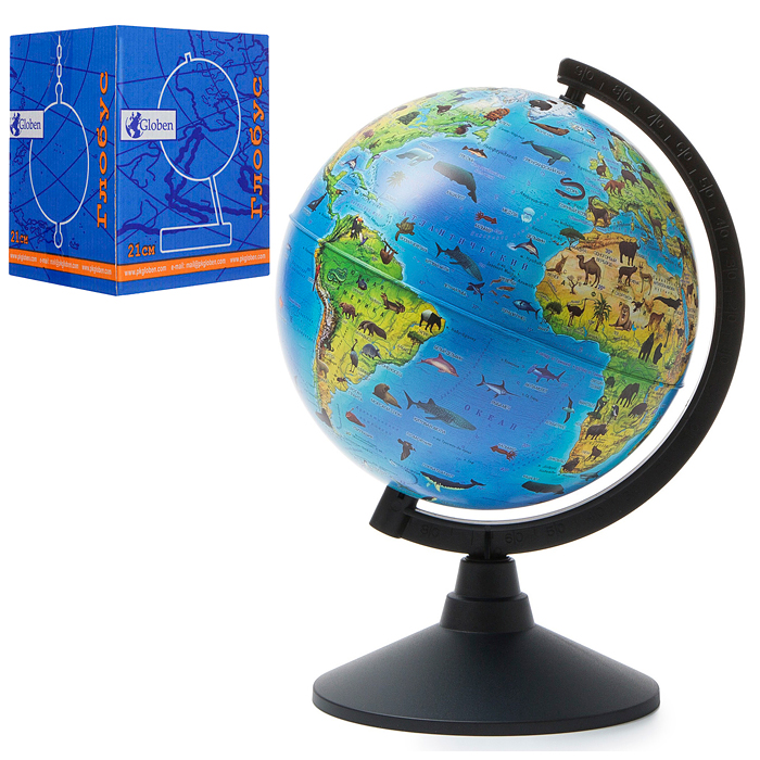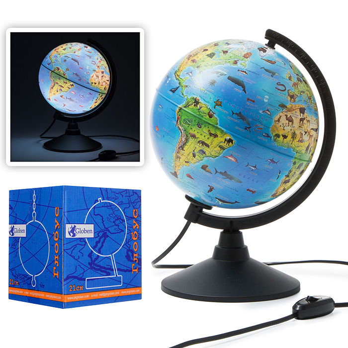 Интерактивный глобус Земли физико-политический 210 мм. с подсветкой от батареек