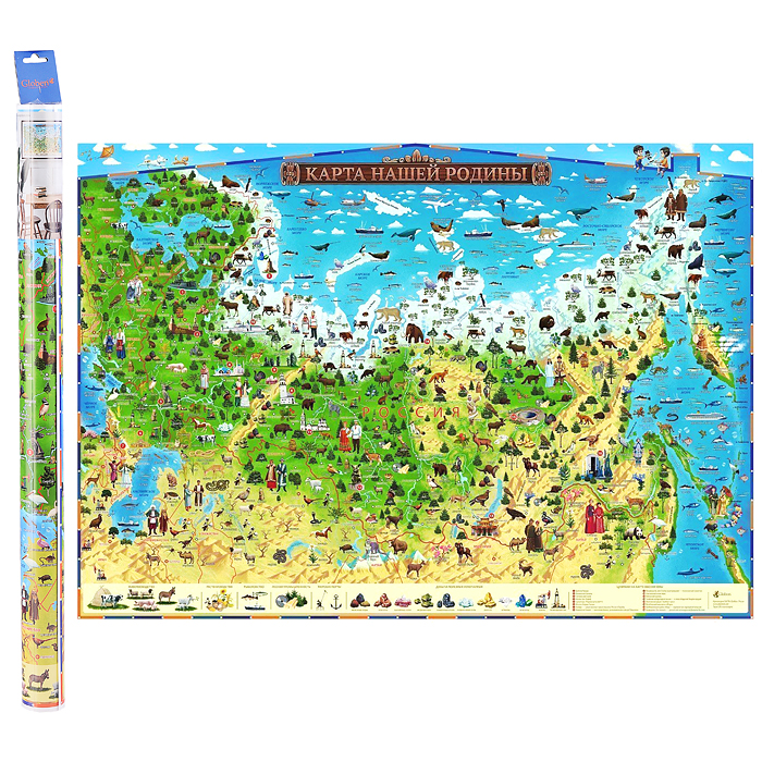Интерактивная карта России для детей "Карта Нашей Родины" 101х69 (с ламинацией)