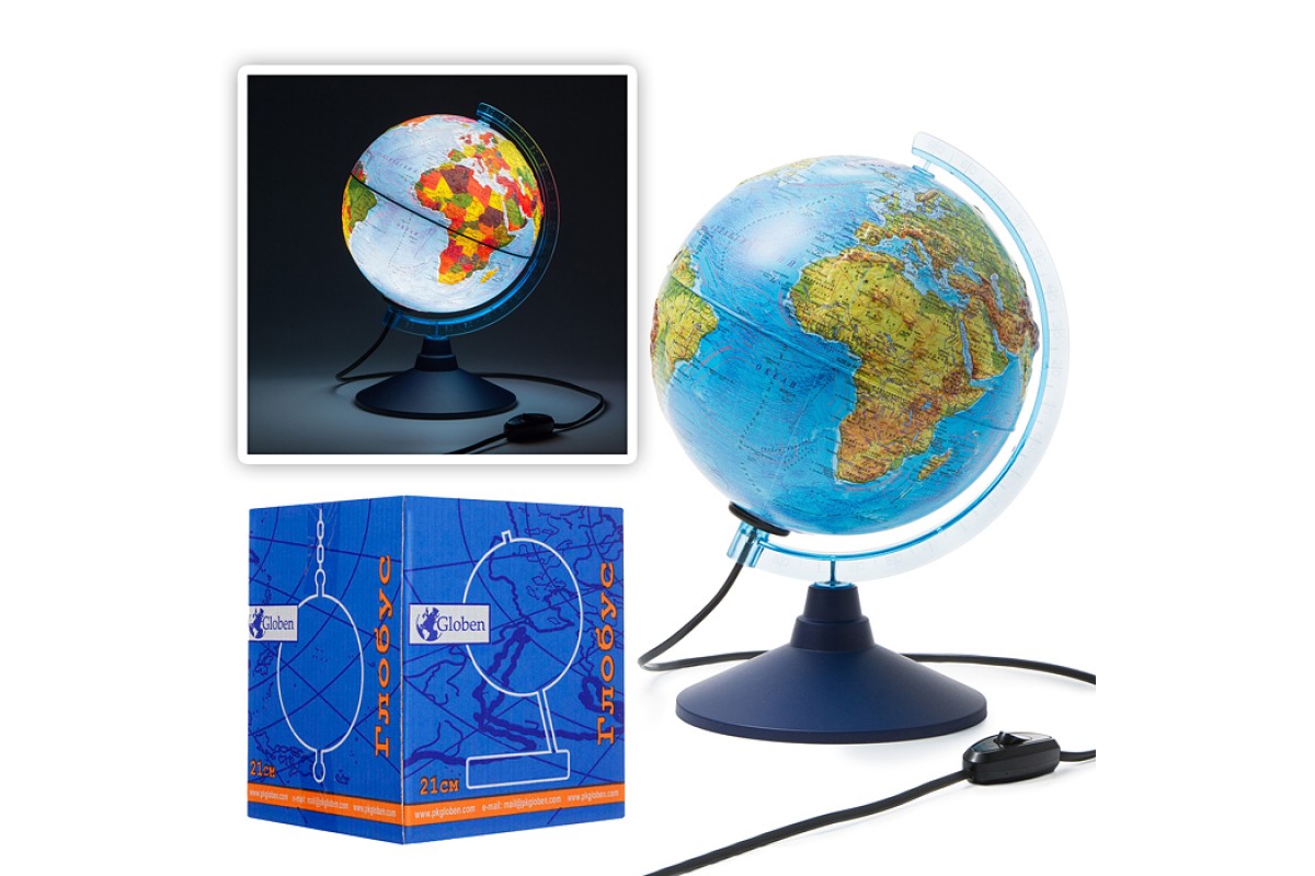 Глобус Земли физико-политический 210мм Рельефный Классик Евро с подсветкой