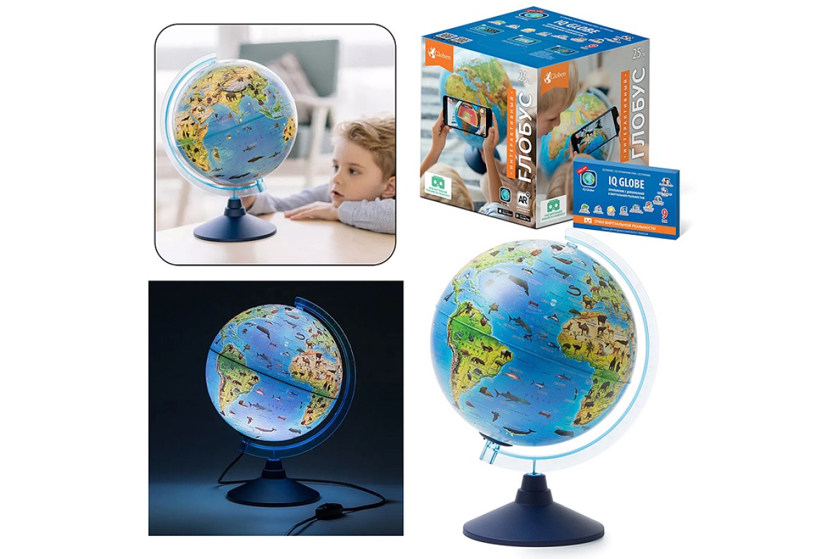 Интерактивный глобус Зоогеографический (Детский) с подсветкой 250мм от батареек.