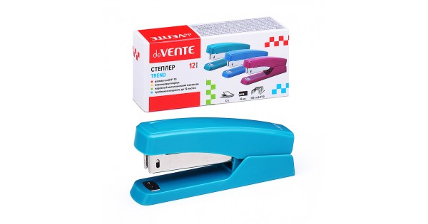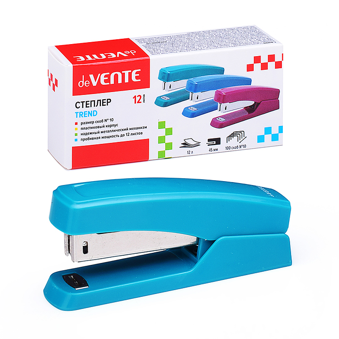 Степлер "Trend" № 10 (мощность 12 листов, глубина скрепления 45 мм) пластиковый, в картонной коробке, изумрудно-бирюзовый