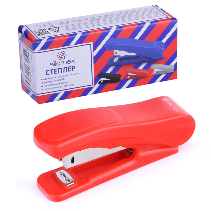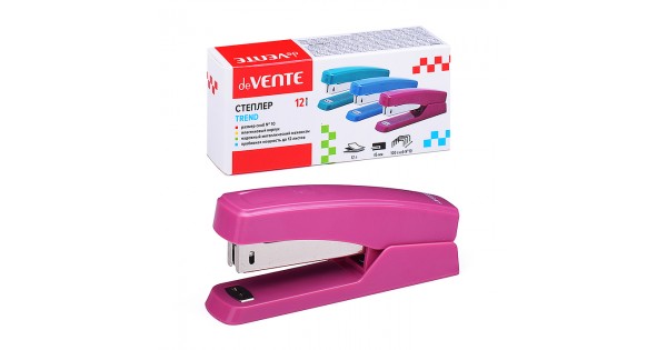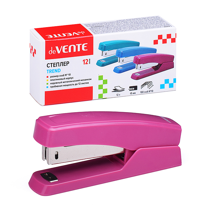 Степлер "Trend" № 10 (мощность 12 листов, глубина скрепления 45 мм) пластиковый, в картонной коробке, брусничный